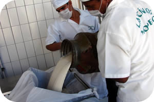 Ao chegar na plataforma de recepção, o leite passa por um rigoroso controle onde são realizadas analises laboratoriais de rotina como: